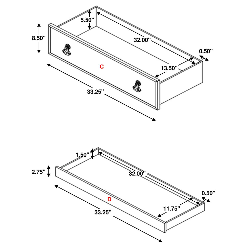 Includes: One (1) california king bed, one (1) nightstand, one (1) dresser, one (1) dresser mirror, and one (1) chest