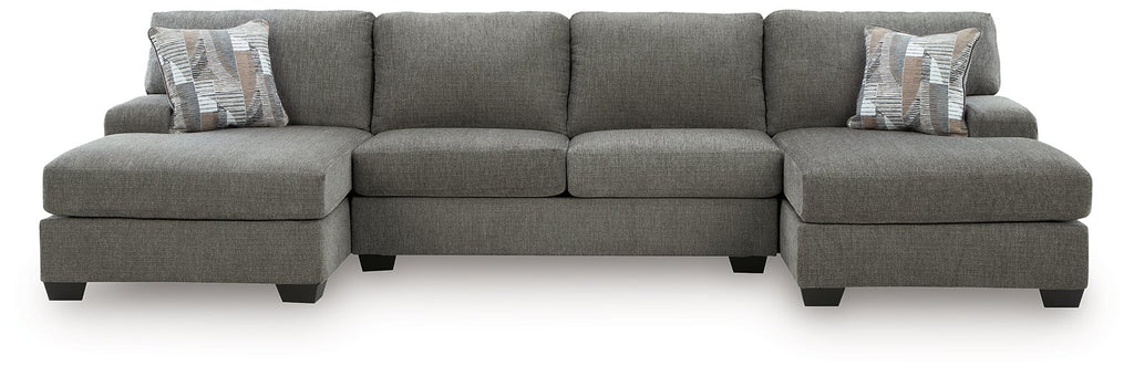Why choose between classic comfort and modern design? This sleeper sectional with double chaise welcomes day-to-day relaxation in style. Its dimensional, menswear-inspired upholstery brings a designer touch to the easygoing silhouette. A built-in full mattress provides extra sleeping space when needed and seamlessly tucks away when not in use. Gear up for game night or settle in to stream your favorite show—this sectional is an ideal supporting character for your living room hangs and overnight visits.