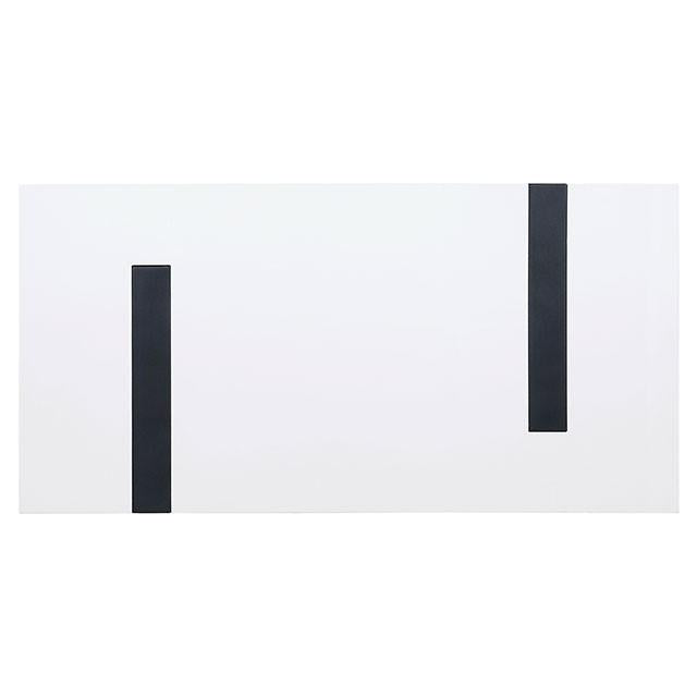 EIMEAR Coffee Table, 47 1/4"L X 23 5/8"W X 18"H, 64.2lbs. This is visual geometry on display. Although each table is available individually, the greatest impression is achieved by the complete distinctive set that includes matching coffee, end and sofa tables. They share an exclusive unique modern art-inspired design that actually incorporates the durable construction of two black metal rectilinear outlined legs into the deeply polished white tabletops for a fashionable statement of high style.