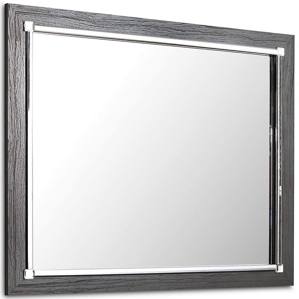 Reminiscent of Hollywood glamour of yesteryear, this mirror interprets luxury in a decidedly modern way. A dazzling gray finish and faceted chrome-tone accents enhance the star power. This mirror's ability to hang vertically and horizontally makes it a truly versatile piece.