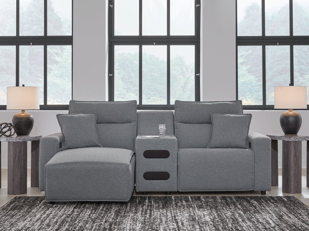 Components: 3-Piece: Left-Arm Facing Power Reclining Chaise/Console w/ Audio System/Right-Arm Facing Power Reclining Chaise