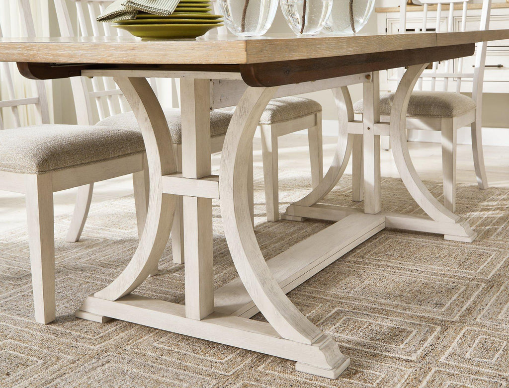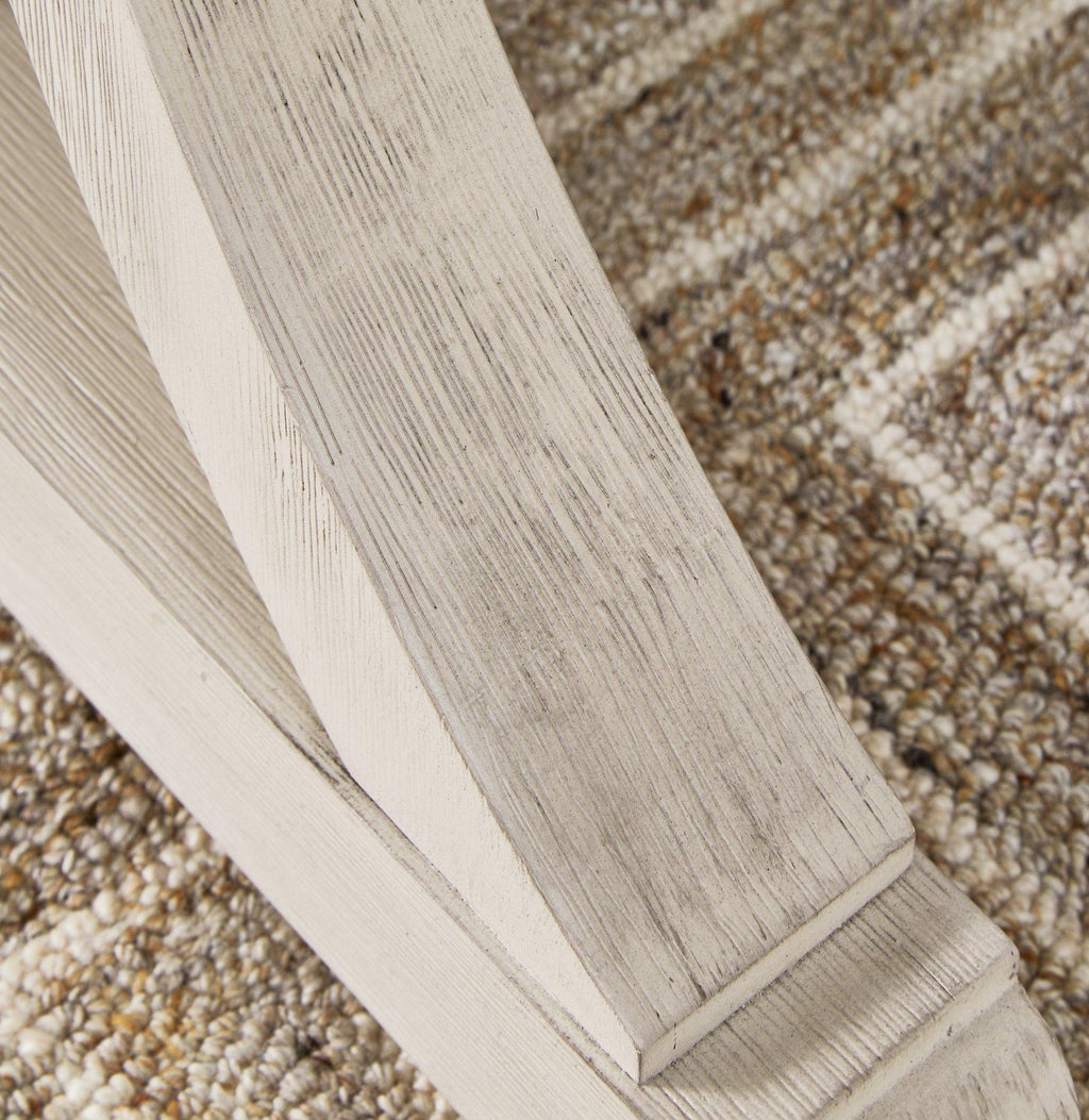 This dining set elevates the art of modern farmhouse design. Its charming two-tone aesthetic blends antiqued white and light grayish brown finishes for a feeling of relaxed comfort. Now your only worry is what to serve for dinner.